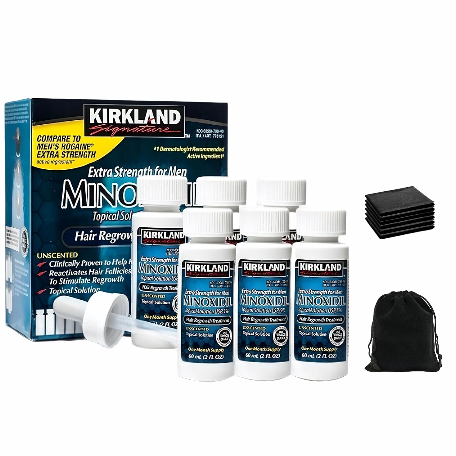 5% Minoxidil Topical Solution for Men - 6 Month Supply (6 x 2 Fl Oz), Hair Regrowth Treatment with Dropper, Cleaning Cloths & Travel Pouch