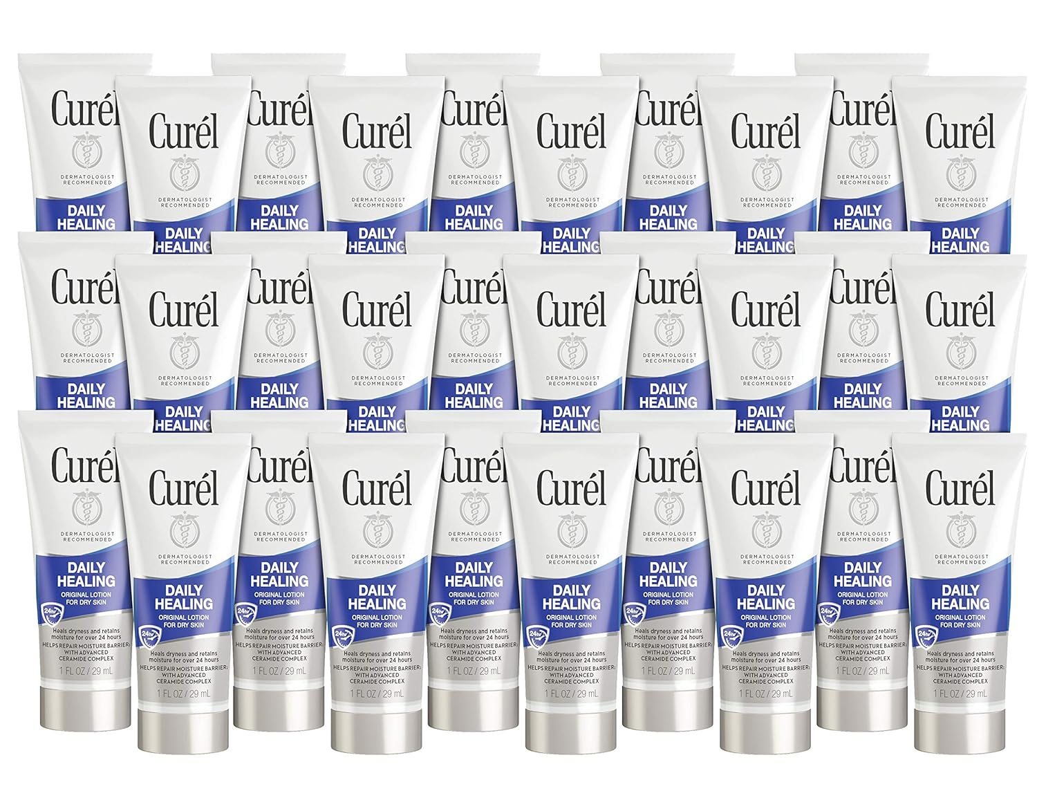Curel Daily Healing Dry Skin Lotion, Hand and Body Moisturizer, 1 fl Ounce Travel Size, Mini size, 30-pack, with Advanced Ceramide Complex, helps to Repair Moisture Barrier