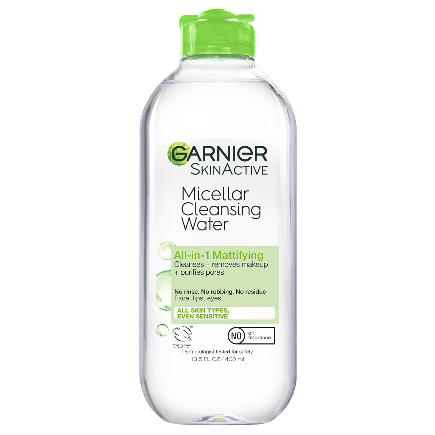 Garnier SkinActive Micellar Water for Oily Skin, Facial Cleanser & Makeup Remover, 13.5 Fl Oz (400mL) 1 Count (Packaging May Vary)