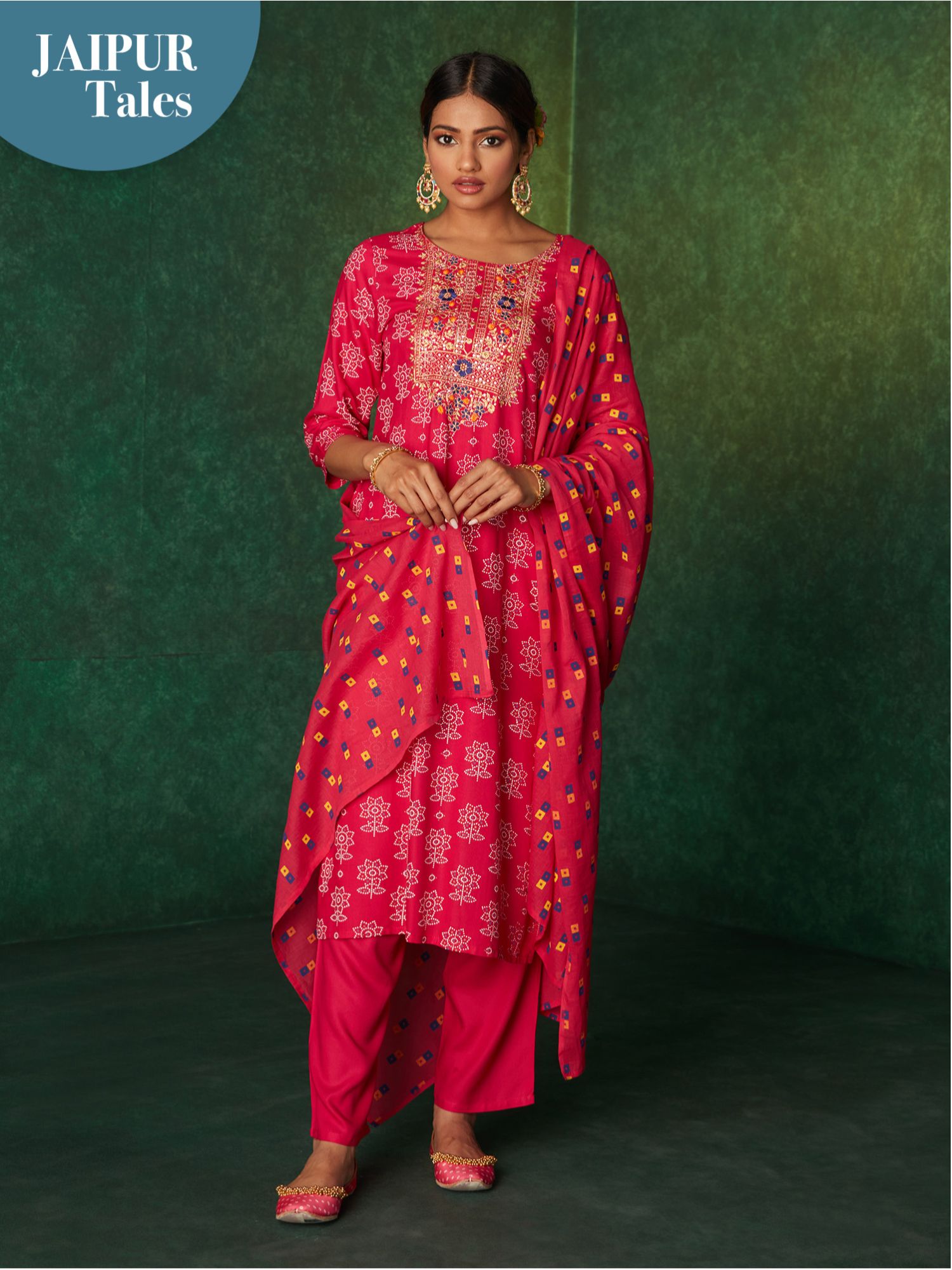 Elevate your style with this Bandhani-inspired Kurta Set made from comfortable Rayon material. The stunning printed pattern adds a touch of tradition to your modern look. The regular fit and slip-on closure ensure both comfort and convenience.