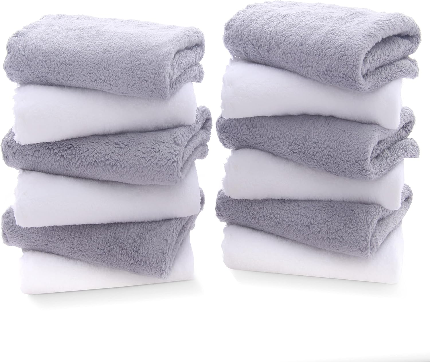 TENSTARS 12 Pack Premium Washcloths Set - Quick Drying- Soft Microfiber Coral Velvet Highly Absorbent Wash Clothes - Multipurpose Use as Bath, Spa, Facial, Fingertip Towel (Grey and White)