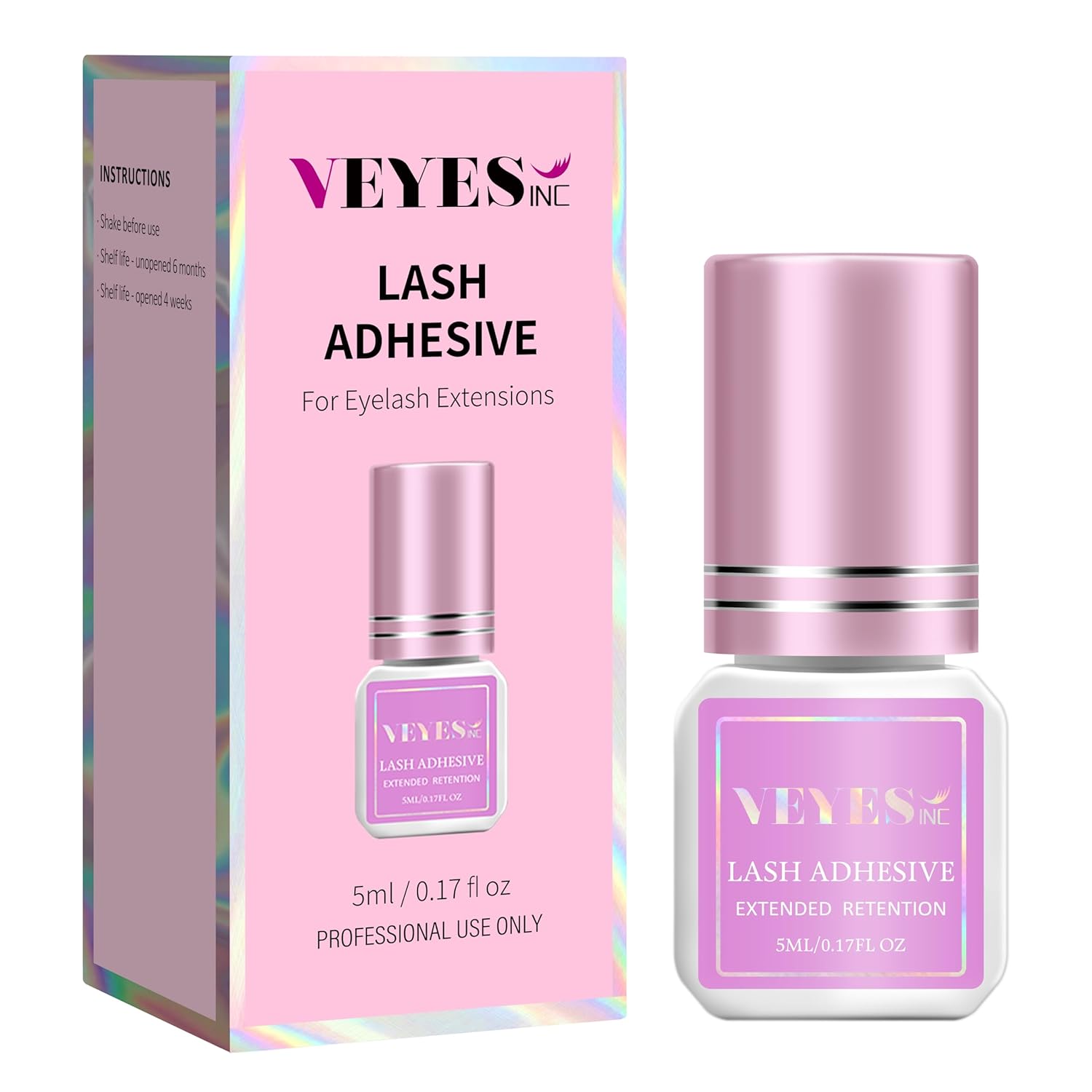 VEYES INC Eyelash Extension Glue - 0.5-1 Sec Drying (0.17fl.oz / 5ml)/Up to 8 Weeks Retention/Black Adhesive for Professional Use Only