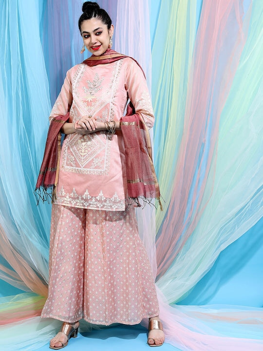- Crafted from a comfortable cotton blend, it's ideal for machine wash. The set includes embroidered palazzos with an elasticated waistband for a flattering fit.
